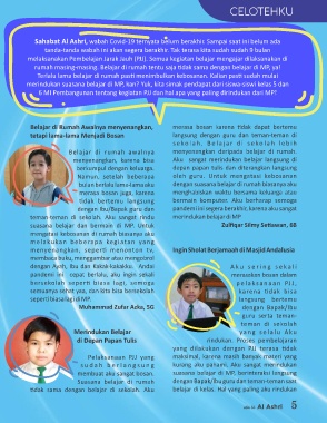 merindukan suasana belajar di MP, kan? Yuk, kita simak pendapat dari siswa-siswi kelas 5 dan