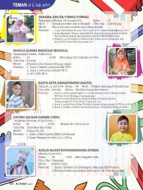 Prestasi : 1. Juara 1 hafalan surat pendek TK B