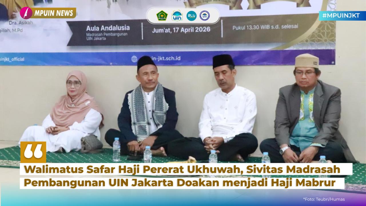 Jakarta, 17 April 2026 — Suasana khidmat dan penuh kehangatan menyelimuti Aula Andalusia Madrasah Pembangunan UIN Syarif Hidayatullah Jakarta dalam kegiatan Tasyakuran dan Doa Bersama Walimatus Safar Haji. Kegiatan ini menjadi momen spiritual sekaligus silaturahmi bagi keluarga besar madrasah dalam mengiringi keberangkatan para calon jamaah haji, Jum'at (17/4).
